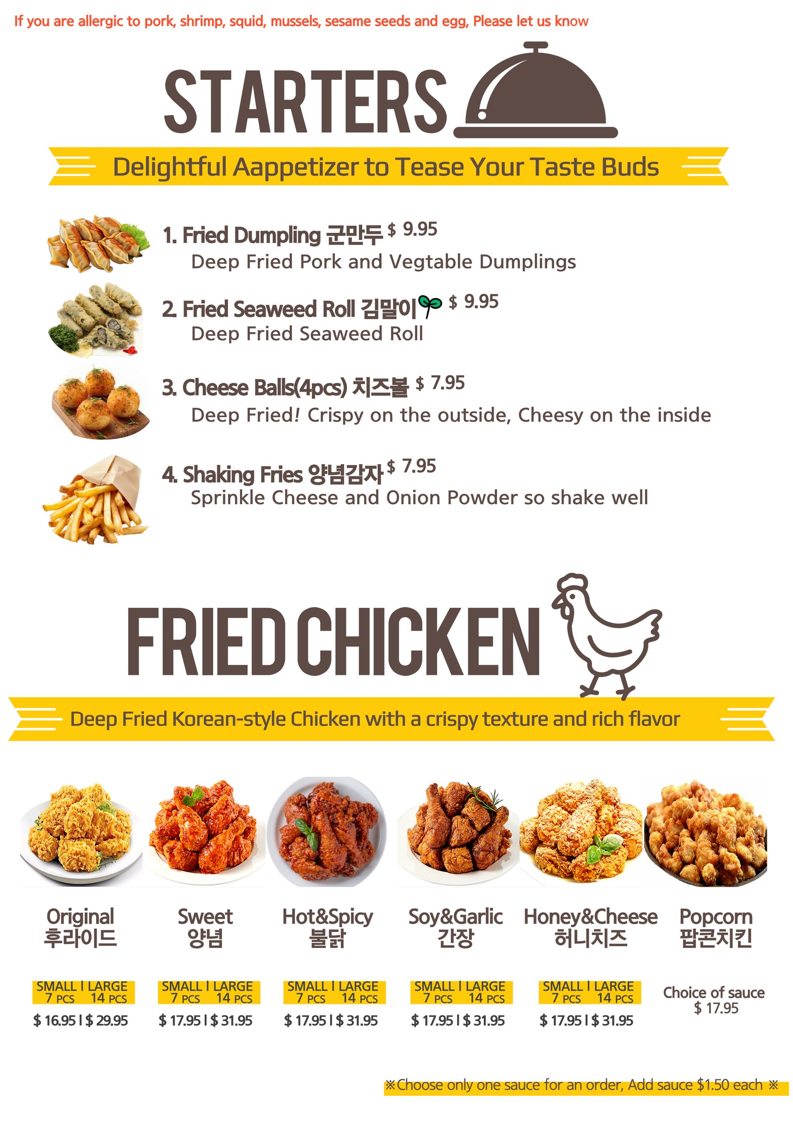Chicken - Plain, Chili, Soy & Garlic, Honey & Cheese, Popcorn